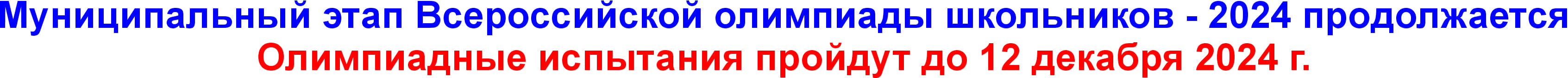 Начавшийся 6 ноября 2024 г. муниципальный этап Всероссийской предметной олимпиады школьников продолжается. Олимпиадные испытания пройдут до 6 декабря 2024 г.