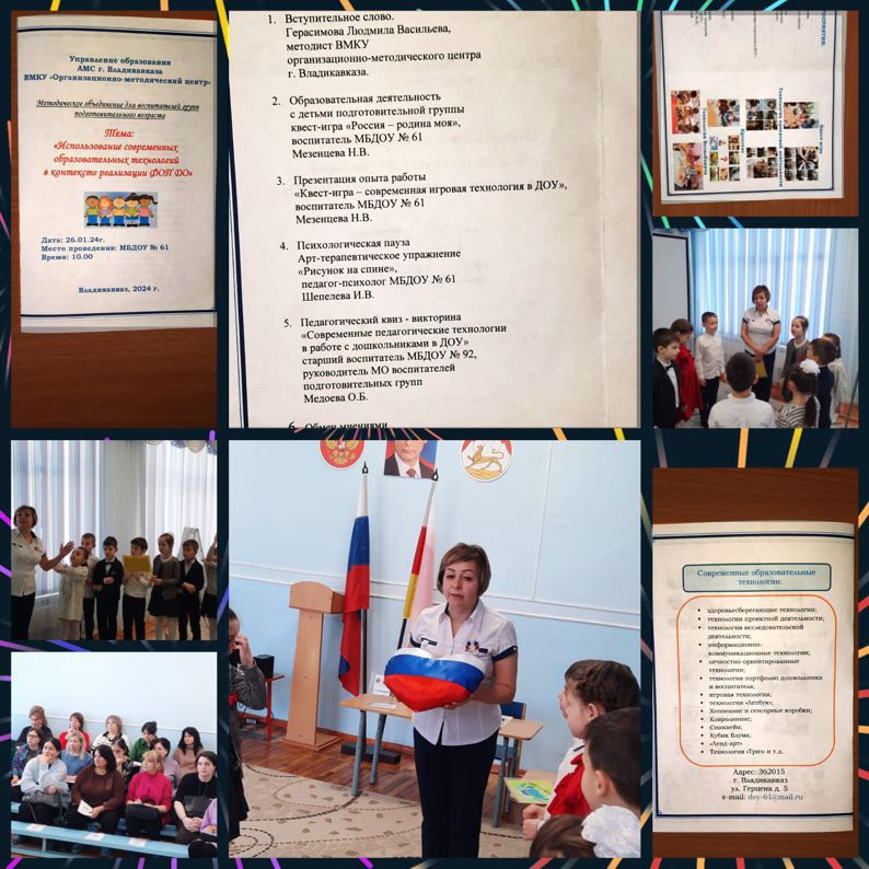 26 января 2024 г. на базе МБДОУ № 61 прошло заседание городского методического обьединения для воспитателей групп подготовительного возраста на тему:"Использование современных образовательных технологий в контексте реализации ФОП ДО". По теме проведены мероприятия с детьми, педагоги обменялись опытом работы.