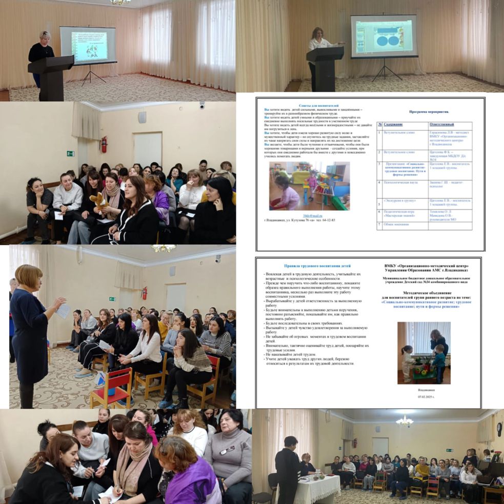 10 февраля 2025 года в соответствии с Планом ВМКУ «ОМЦ» на базе МБДОУ «Детский сад N34» состоялось заседание городского методического объединения воспитателей групп раннего возраста. Тема: «Социально-коммуникативное развитие дошкольников в условиях трудовой деятельности».