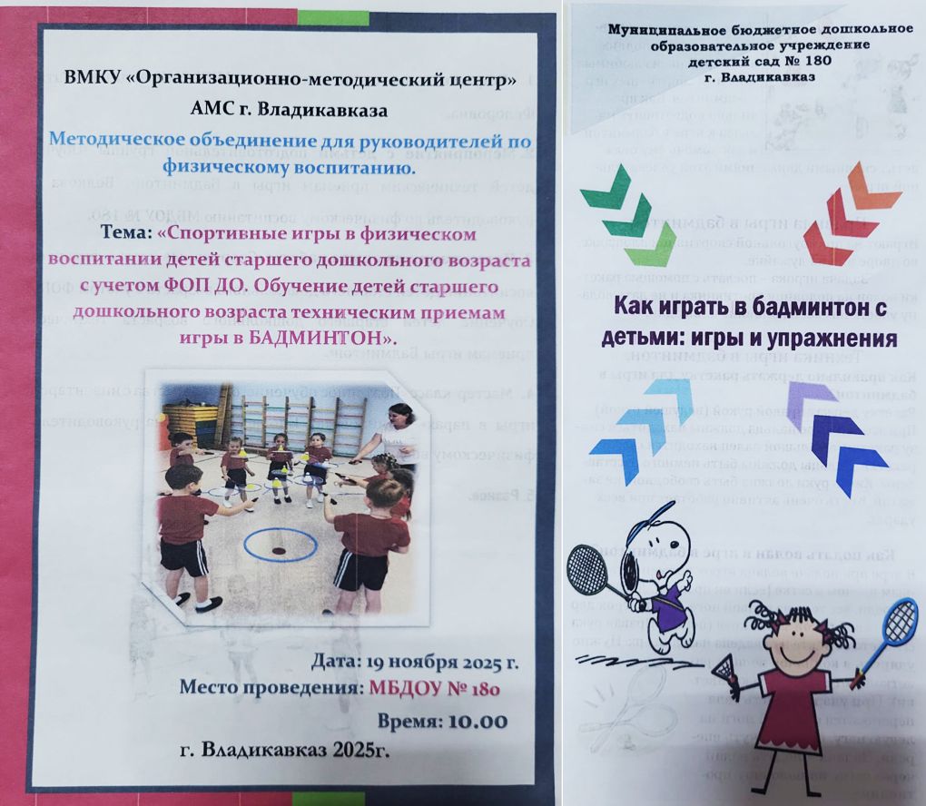 19 ноября в МБДОУ № 180 состоялось заседание  методического объединения руководителей по физическому воспитанию на тему " Обучение детей старшего дошкольного возраста техническим приёмам игры в бадминтон".