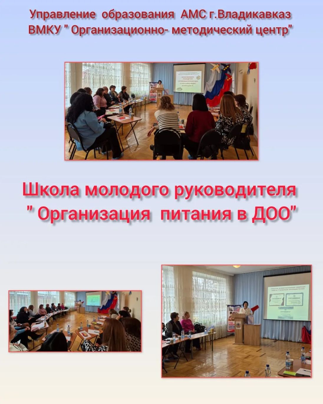 24 02 2026г на базе МБДОУ детский сад 77 прошло очередное заседание школы молодых руководителей. Заведующий Каллагова ФХ.поделилась опытом работы по " Организации питания в ДОУ ".